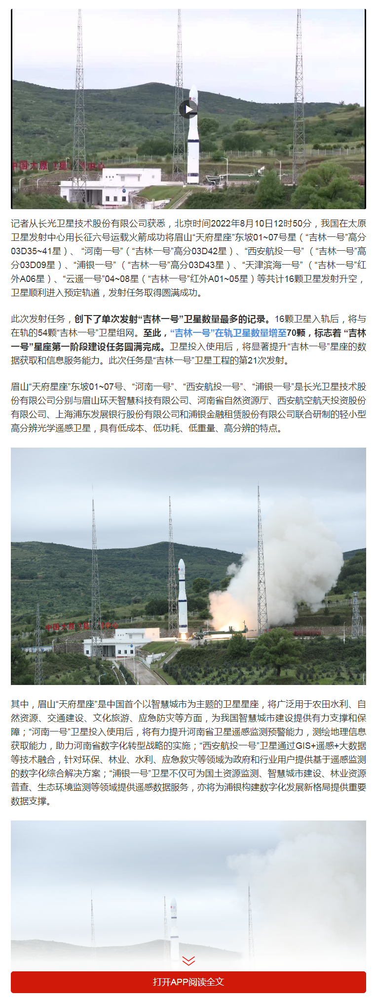 一箭十六星!“吉林一号”在轨卫星数量增至70颗