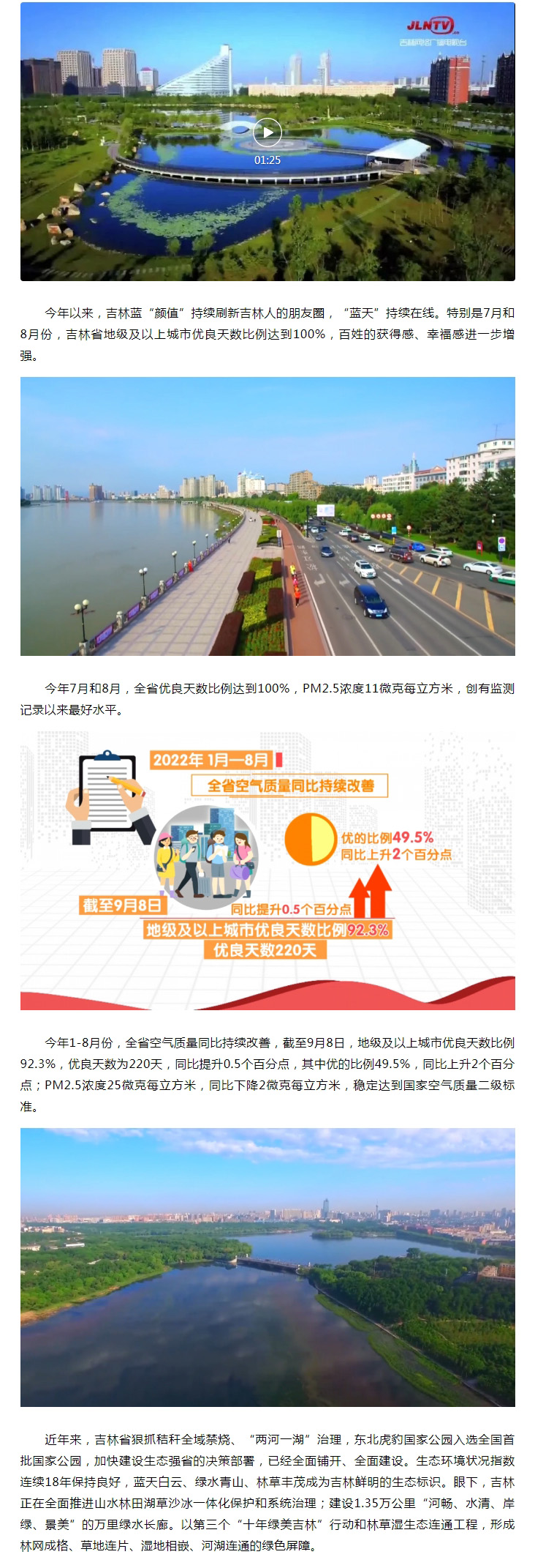 “吉林蓝”持续在线!​7-8月我省地级及以上城市优良天数比例达100%