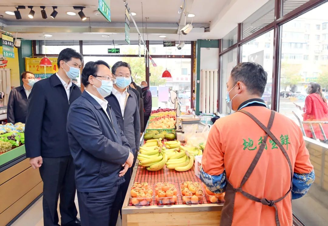 9月15日,省委书记景俊海随机来到地利生鲜百屹店,实地察看防疫措施,详细询问经营情况。