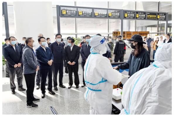9月28日,省委书记景俊海到长春市突击检查疫情防控工作,在长春龙嘉国际机场航站楼实地察看疫情防控措施落实情况。