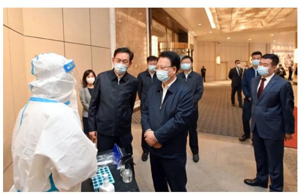 9月28日,省委书记景俊海到长春市突击检查疫情防控工作,在香格里拉大酒店详细了解核酸检测和环境消杀等情况。