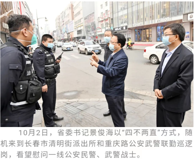 今天(10月2日)是国庆假期第二天,省委书记景俊海以“四不两直”方式,在长春市进行暗访检查。他强调,要深入贯彻习近平总书记重要讲话重要指示精神,坚持人民至上、生命至上,始终保持“时时放心不下”的责任感,坚决做到疫情要防住、经济要稳住、发展要安全,确保人民群众度过健康、平安、祥和国庆假期。