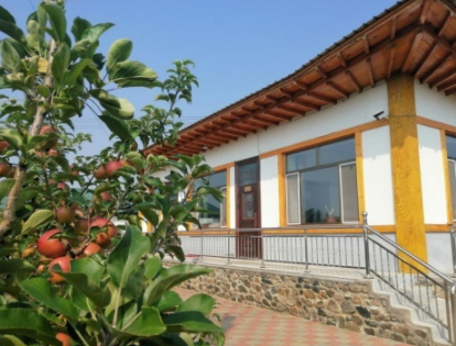 走在村里,感觉非常干净,许多村民家的院子里也种着苹果。在村民李明玉家里,院里苹果树的红果绿叶与宽敞明亮的房屋互相映衬,一看日子就过得很是富足。李明玉开心地告诉记者,我这小院的苹果,一年收入5万元左右呢。