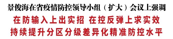 景俊海指出,疫情就是命令,防控就是责任。各级党委政府要坚定不移贯彻落实习近平总书记重要讲话重要指示精神,坚定不移坚持人民至上、生命至上,坚定不移落实“外防输入、内防反弹”总策略,坚定不移贯彻“动态清零”总方针,既要坚决整治层层加码、一刀切等问题,又要防止以优化措施为名放松防控要求、随意减码,坚决做到执行第九版防控方案不动摇、落实二十条优化措施不走样、处置局部疫情不迟疑、抓实防输入控反弹不懈怠。各级疫情防控指挥体系要始终处于激活状态、保持高效有序运转,最大程度保护人民生命安全和身体健康,最大限度减少疫情对经济社会发展的影响。