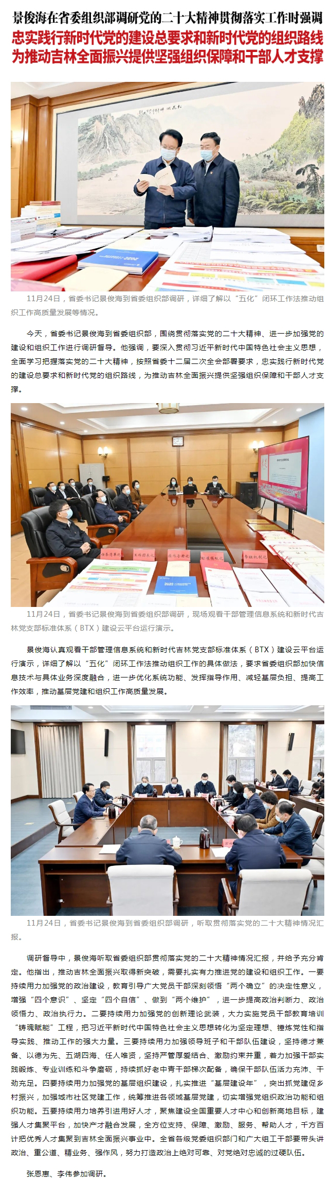 原标题: 景俊海:忠实践行新时代党的建设总要求和新时代党的组织路线 为推动吉林全面振兴提供坚强组织保障和干部人才支撑