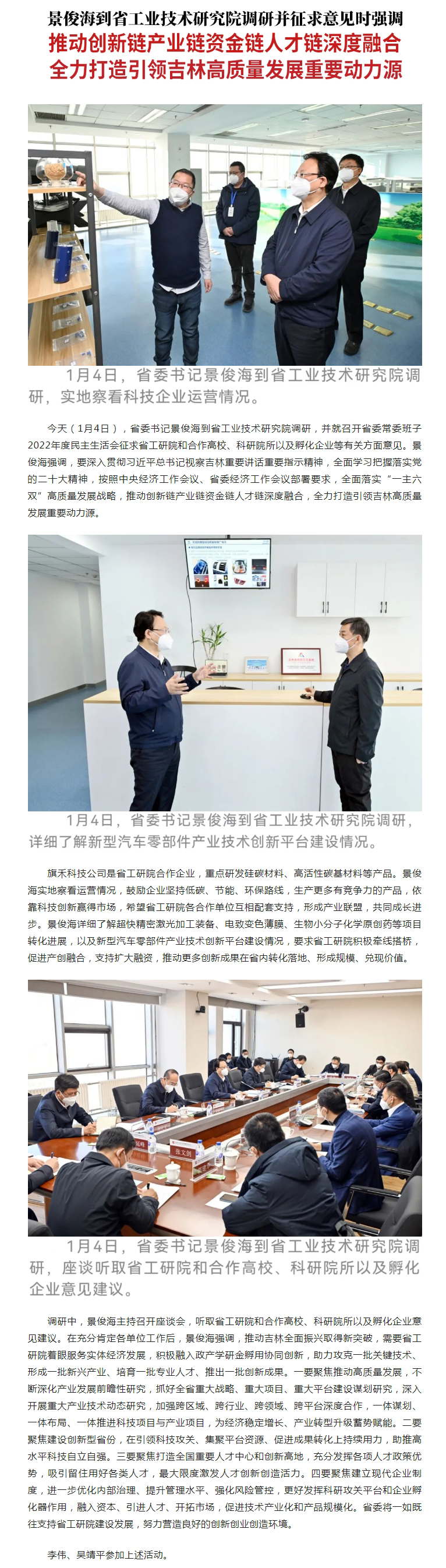 原标题: 景俊海:推动创新链产业链资金链人才链深度融合 全力打造引领吉林高质量发展重要动力源
