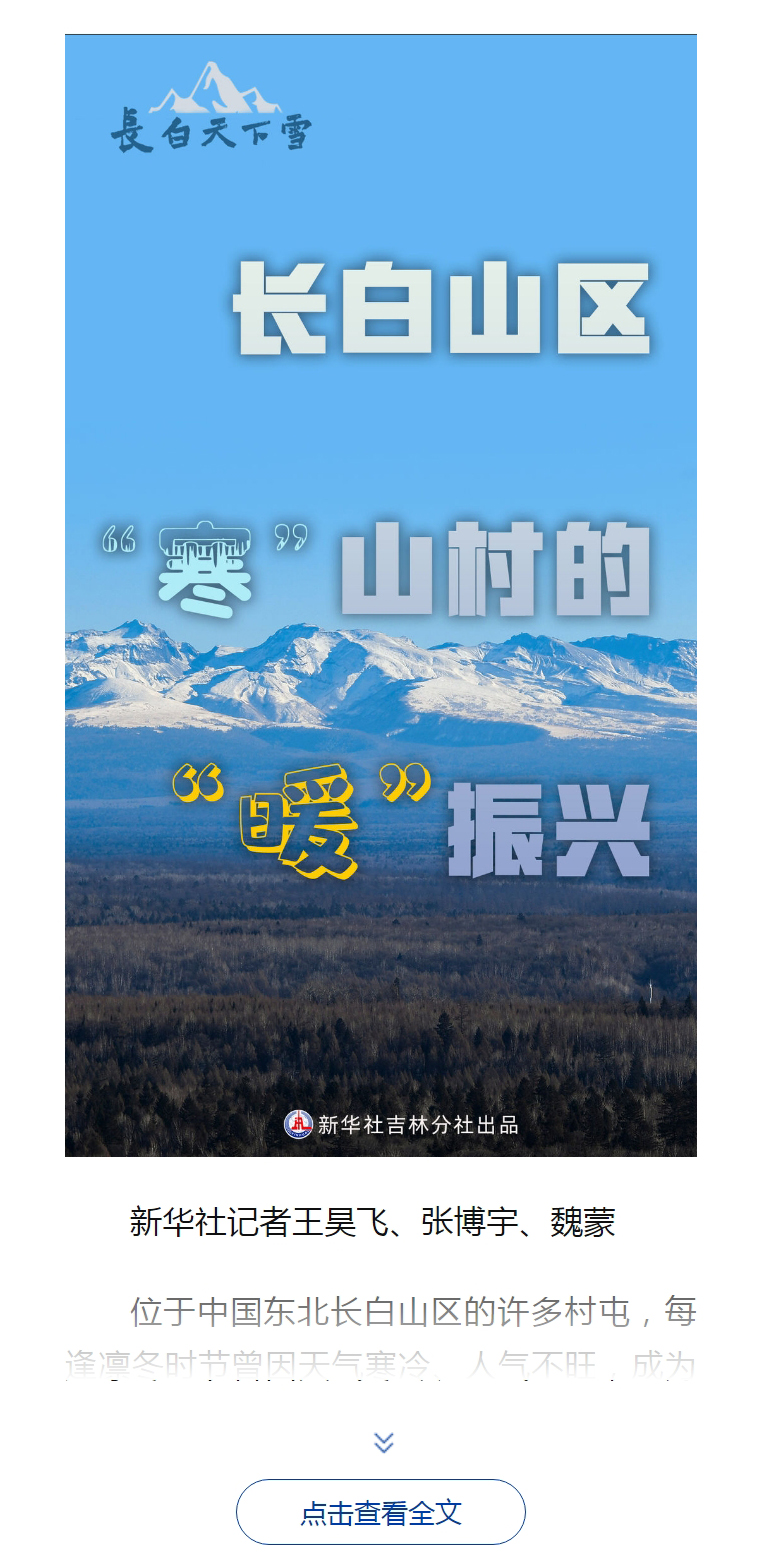 原标题: 吉林新观察·长白天下雪丨长白山区“寒”山村的“暖”振兴