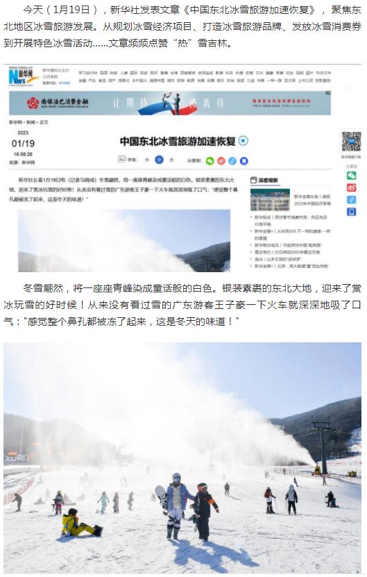 原标题: 央媒看吉林丨新华社聚焦东北冰雪旅游 点赞“热”雪吉林
