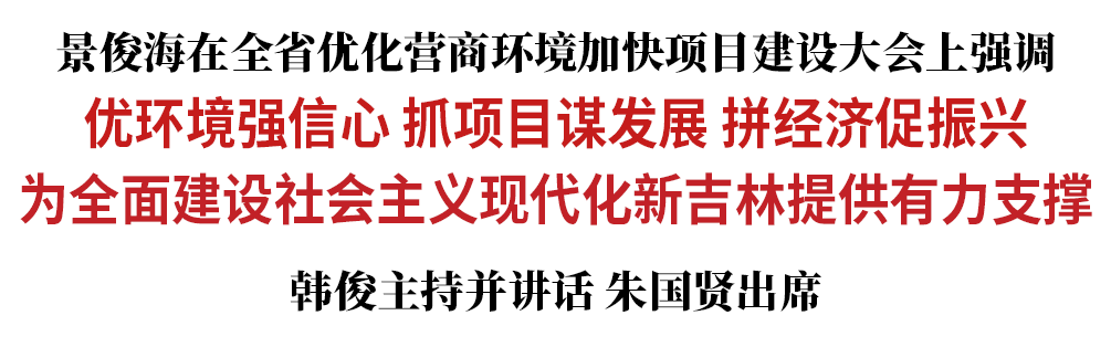 景俊海指出,在中国式现代化进程中推动吉林全面振兴取得新突破,在开放包容、放开搞活中激发内生动力,在比拼经济、竞相发展的新赛道实现争先晋位,必须抓好营商环境和项目建设。一要提效率、优服务、增活力,以“放”为先、放出一片发展新气象,以“拓”为重、拓展更多市场新渠道,以“造”为基、造就更优营商新环境,以“聚”为要、聚起更强发展新动能。二要抓项目、扩投资、兴产业,抢抓发展机遇、政策机遇、改革机遇、产业机遇,加快产业项目建设进度,全面加强基础设施项目建设,狠抓科技创新项目实施,推动民生保障项目落地,持续推进“五个合作”,在融入国内国际双循环中引资金、招人才、落项目、聚资源、增人气,以产业振兴集聚发展效能,以科技创新凝聚发展潜能,以人才兴旺汇聚发展众能。三要强组织、落责任、聚合力,全面落实五级书记抓营商环境、省领导包保重大项目等机制,开展好“服务企业周”“万人助万企”“企业家日”和营商环境专项整治等活动,大力培树“严新细实”优良新风,扎实运用“五化”闭环工作法,严格督查问效,确保营商环境和项目建设工作环环相扣、层层推进、事事落实。