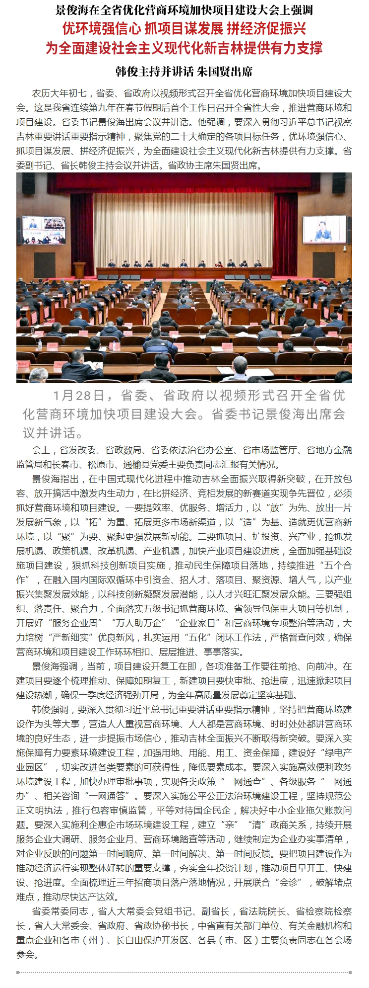 原标题: 景俊海:优环境强信心 抓项目谋发展 拼经济促振兴 为全面建设社会主义现代化新吉林提供有力支撑