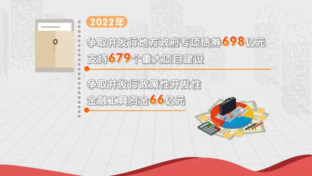 2022年,吉林省实施5000万元以上项目2899个,同比增加387个,全省项目投资(不含房地产)增长16.4%,其中5000万元及以上项目投资增长19.1%。争取并发行地方政府专项债券698亿元,支持679个重大项目建设。争取并发行政策性开发性金融工具资金66亿元。