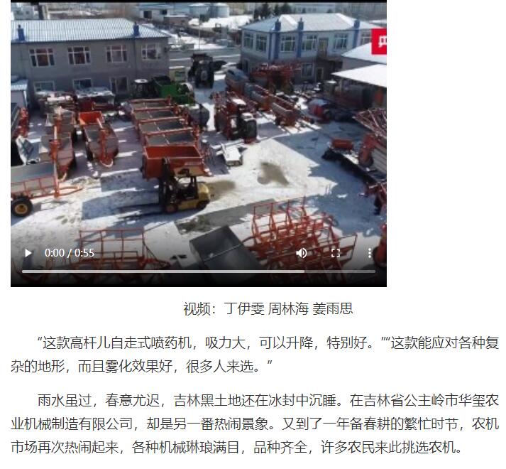 李忠洋是双阳区的种粮大户,去年,他购买了一台自走式喷杆喷雾机,扎扎实实尝到了甜头。“去年买的是老款的自走自喷式喷雾机,今年要买个高杆儿自走式喷药机。我家那儿一整有个偏坡,30度的坡儿,说过就过去了,相当棒了。”今年,李忠洋特意来进购两台新设备。“目前,公主岭市的农业综合机械化水平达到95%以上,农机总动力达到226万千瓦,农机总台套达到15.5万辆,农机制造企业达到39家,农机经销企业80家以上。”公主岭市农业农村局副局长孟繁强介绍。