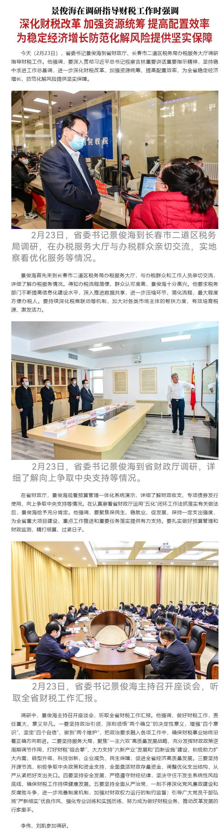 景俊海:深化财税改革 加强资源统筹 提高配置效率 为稳定经济增长防范化解风险提供坚实保障