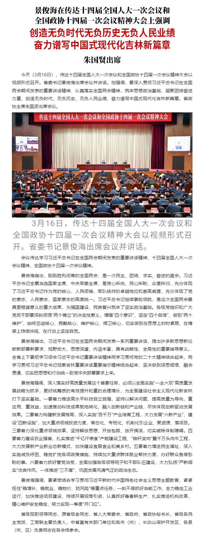 原标题: 景俊海:创造无负时代无负历史无负人民业绩 奋力谱写中国式现代化吉林新篇章
