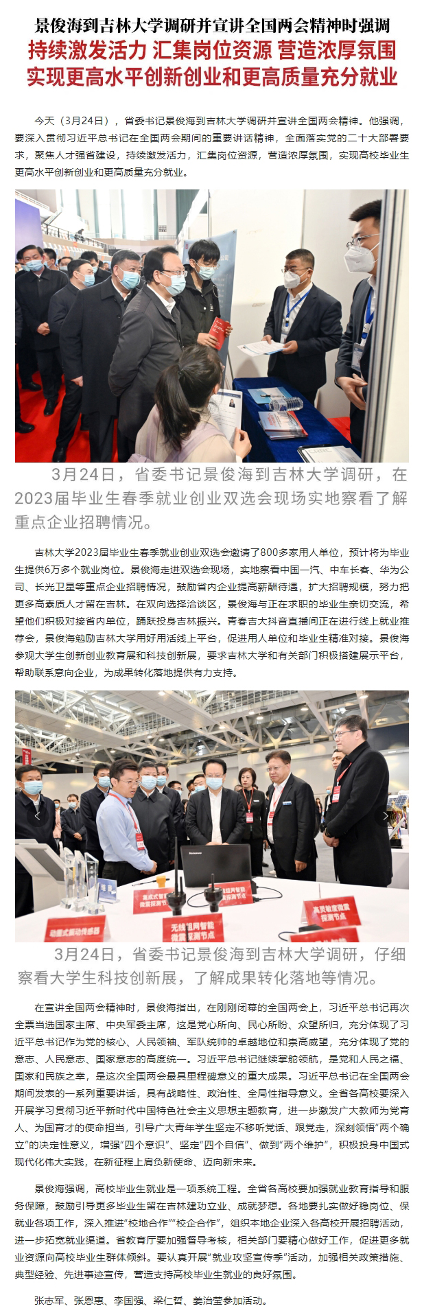 景俊海到吉林大学调研并宣讲全国两会精神