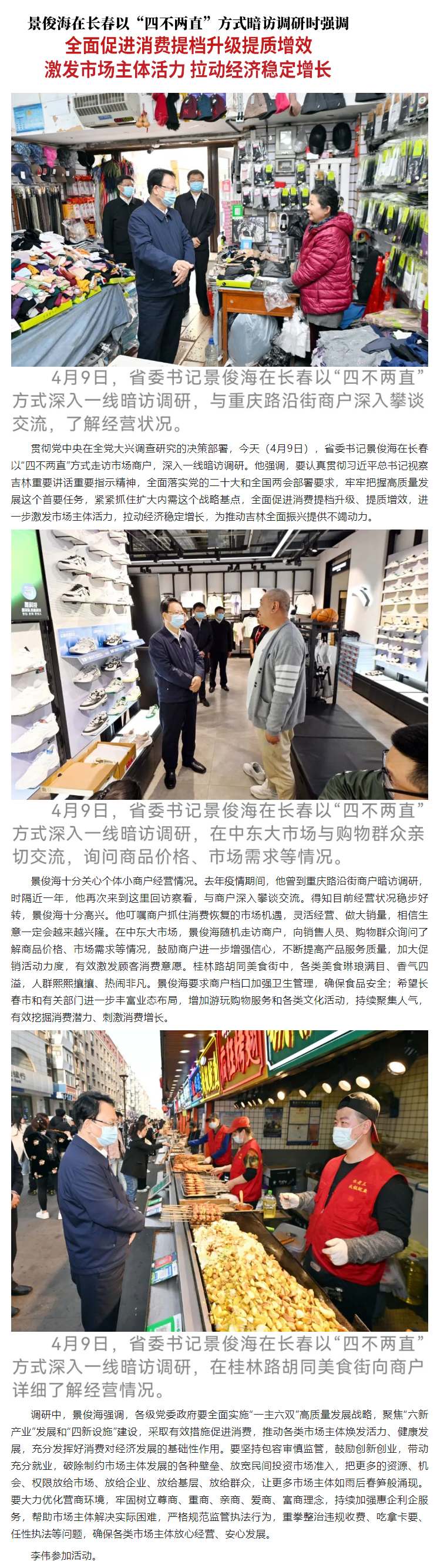 原标题: 景俊海:全面促进消费提档升级提质增效 激发市场主体活力 拉动经济稳定增长