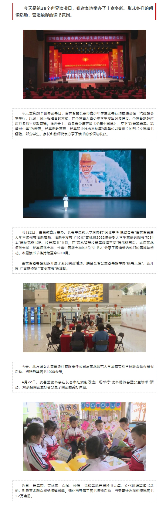 原标题: 世界读书日:吉林省各地举办丰富多彩的阅读活动