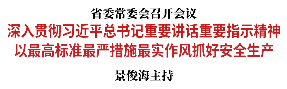 会议指出,全省上下要深入贯彻习近平总书记关于安全生产的重要论述,始终把人民群众生命安全放在第一位,保持“时时放心不下”的责任感,切实以最高标准、最严措施、最实作风抓好安全生产,有效遏制重特大事故发生。要压紧压实安全生产责任,全方位构建安全生产责任体系。要立即开展消防安全专项整治,突出排查医院、学校、养老院、宾馆饭店、商场市场、高层建筑、地下空间等重点场所,以及自建房、群租房、老旧小区等重点区域, 全力防范化解风险。要坚决彻底消除行业安全隐患,聚焦道路交通、建筑施工、危化品、旅游、体育赛事、特种设备、煤矿和非煤矿山特别是尾矿库和头顶库等重点行业领域,持续深入开展防风险、除隐患专项整治,确保整改不走过场、不打折扣、不留隐患。要务实有效做好应急处置准备,一旦出现重大风险要快速响应、妥善应对、高效处置,确保社会安全稳定。