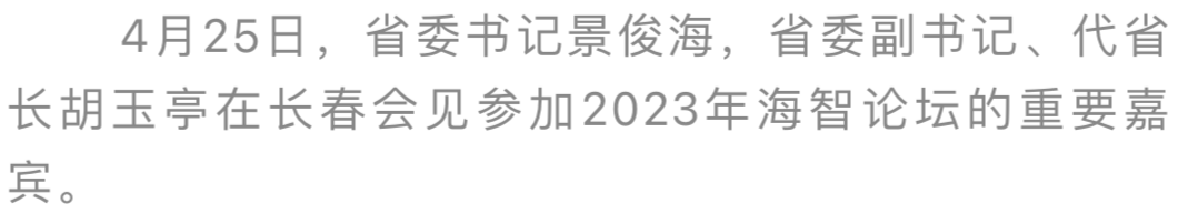 今天(4月25日),省委书记景俊海,省委副书记、代省长胡玉亭在长春会见中国科协党组成员兼国际合作部部长罗晖等参加2023年海智论坛的重要嘉宾。