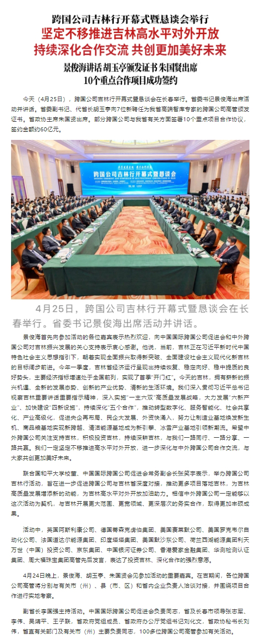 原标题: 跨国公司吉林行开幕式暨恳谈会举行