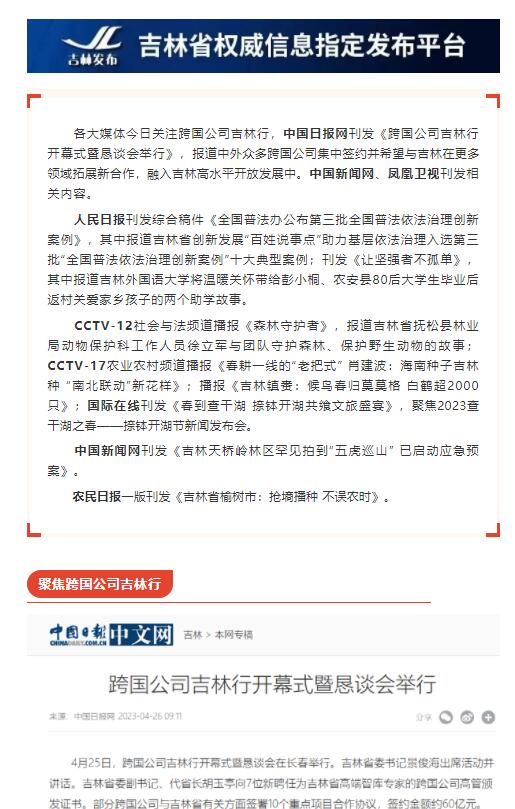 央媒眼中的吉林(2023.4.26)︱聚焦跨国公司吉林行