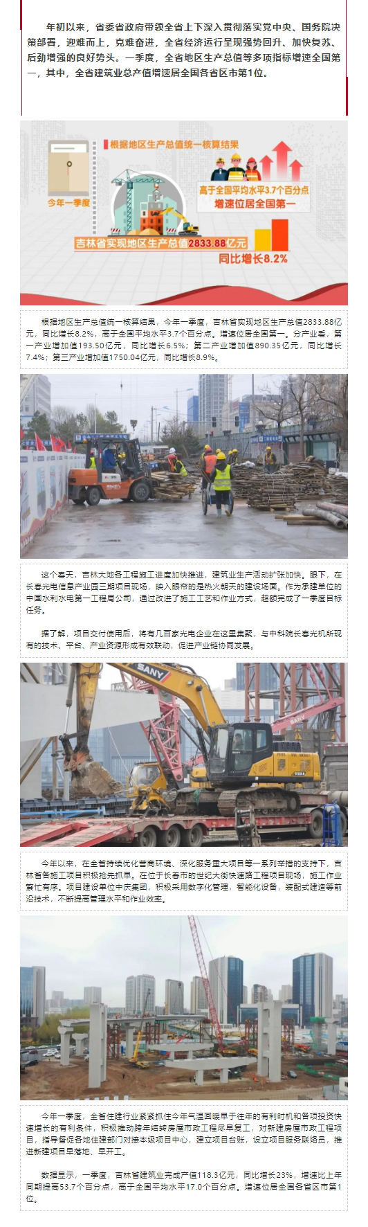 原标题: (新时代新征程新伟业)一季度吉林省建筑业逐步复苏 总产值快速增长