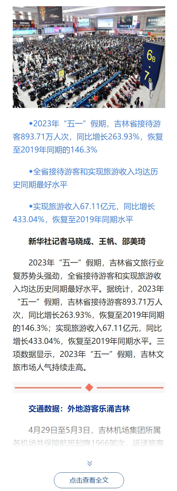 吉林新观察丨交通忙 景区热 消费强——三项数据映射吉林“五一”假期文旅市场之旺