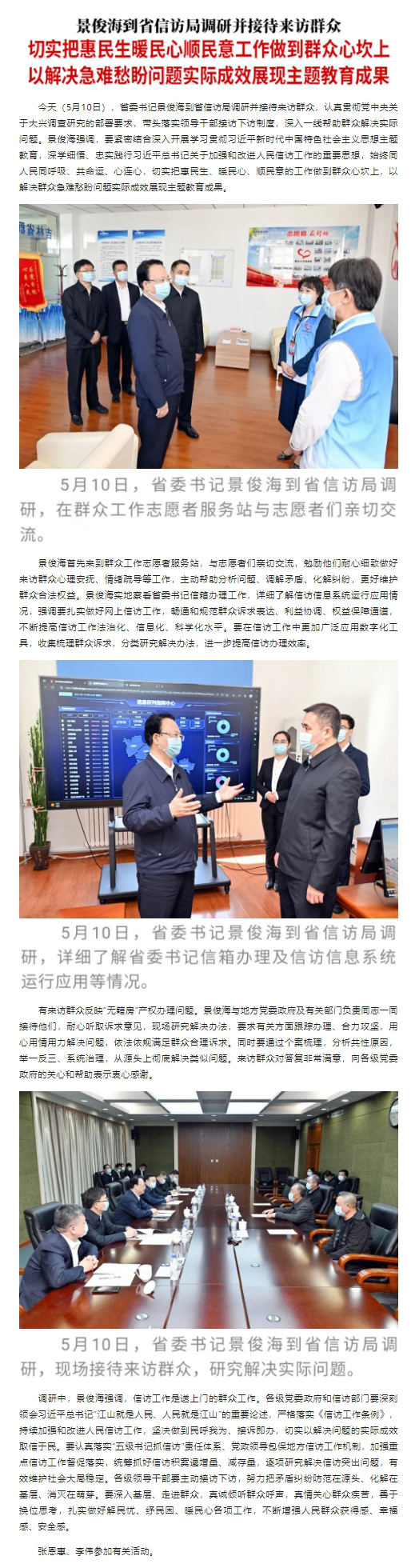 原标题: 景俊海:切实把惠民生暖民心顺民意工作做到群众心坎上 以解决急难愁盼问题实际成效展现主题教育成果