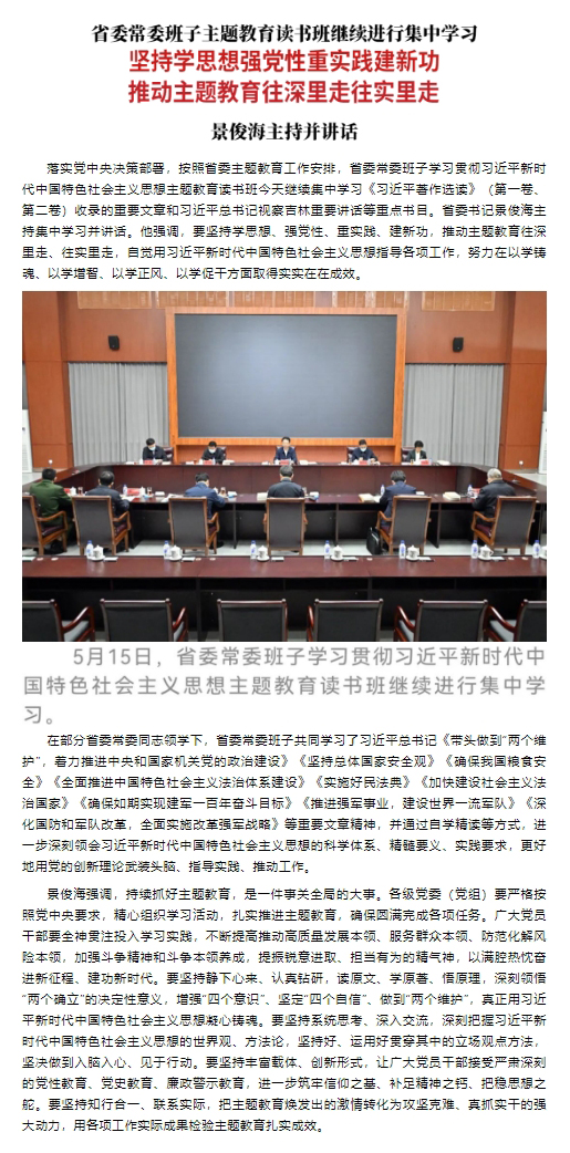 原标题: 省委常委班子主题教育读书班继续进行集中学习