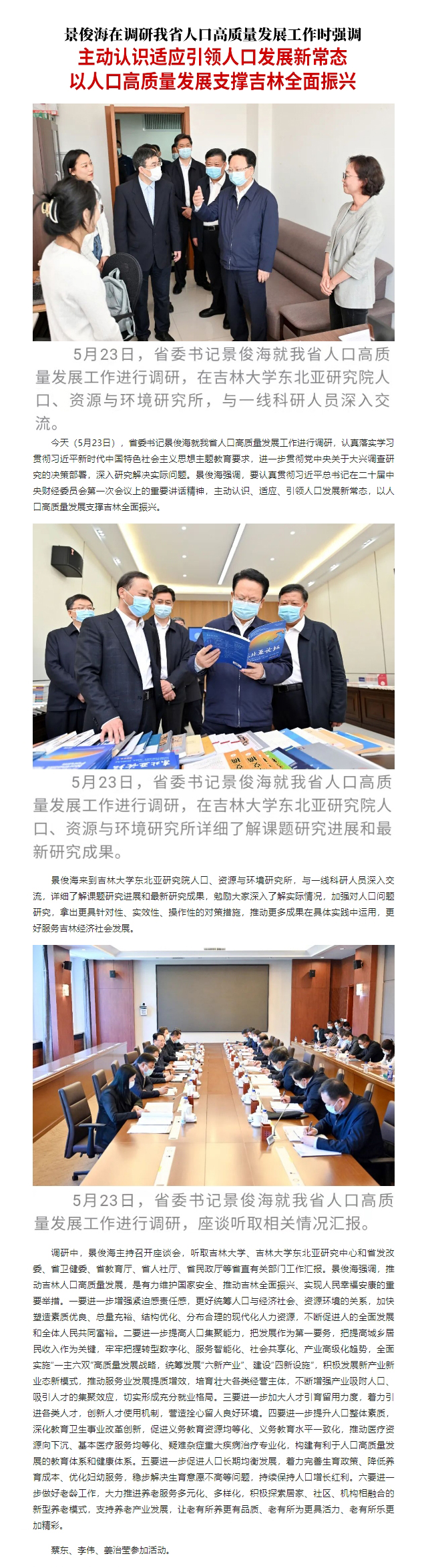 原标题: 景俊海:主动认识适应引领人口发展新常态 以人口高质量发展支撑吉林全面振兴