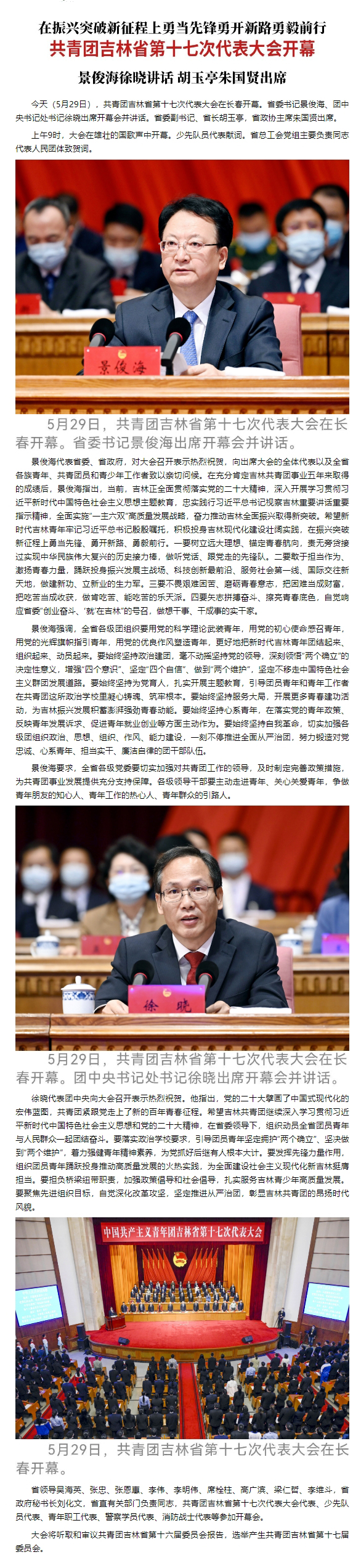 原标题: 共青团吉林省第十七次代表大会开幕