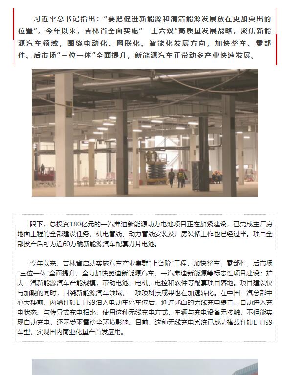 (优环境 抓项目 强信心 开新局)吉林:在新能源汽车产业赛道上加速奔跑
