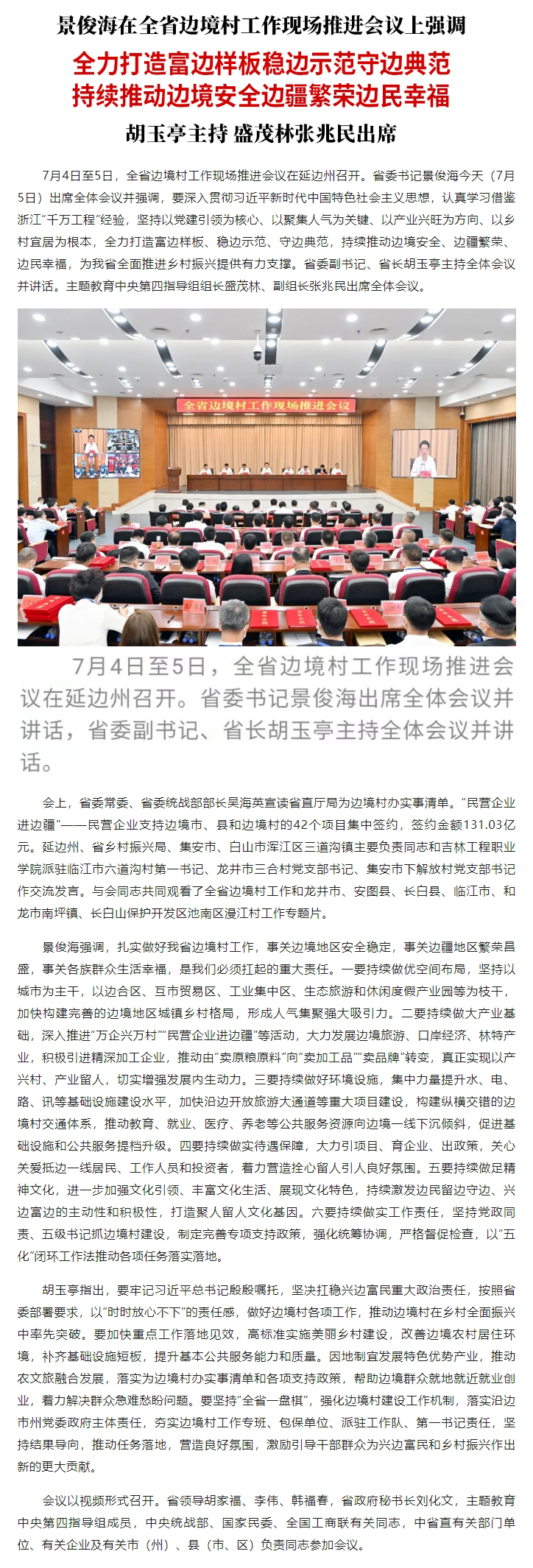 原标题: 景俊海:全力打造富边样板稳边示范守边典范 持续推动边境安全边疆繁荣边民幸福
