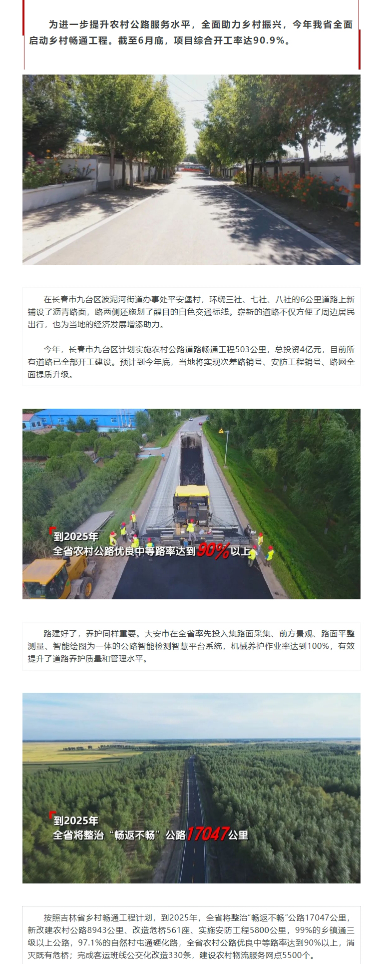原标题: (优环境 抓项目 强信心 开新局)吉林:推进乡村畅通工程建设 助力乡村振兴