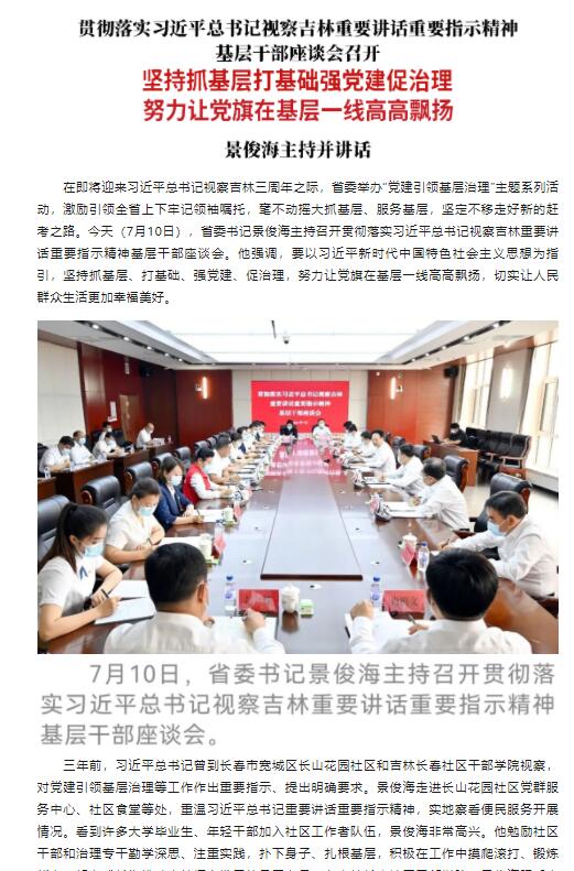 原标题: 贯彻落实习近平总书记视察吉林重要讲话重要指示精神基层干部座谈会召开