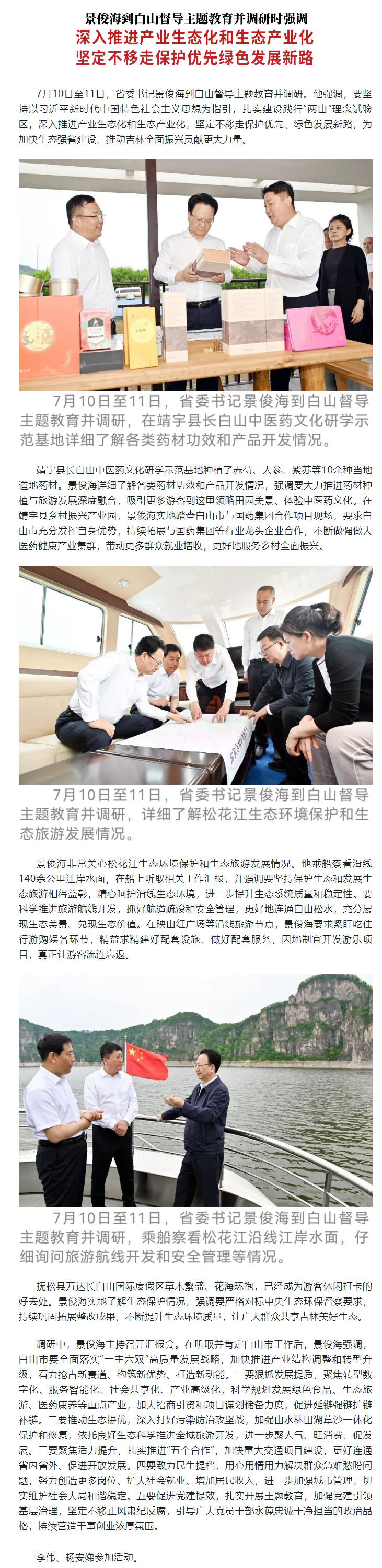 原标题: 景俊海:深入推进产业生态化和生态产业化 坚定不移走保护优先绿色发展新路