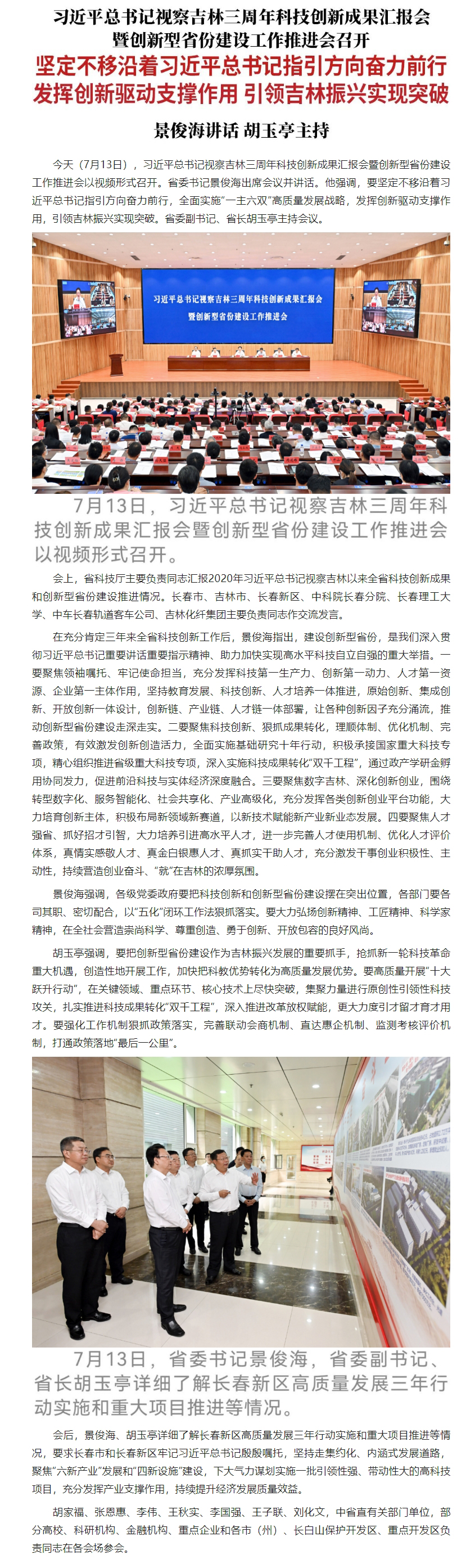 原标题: 习近平总书记视察吉林三周年科技创新成果汇报会暨创新型省份建设工作推进会召开
