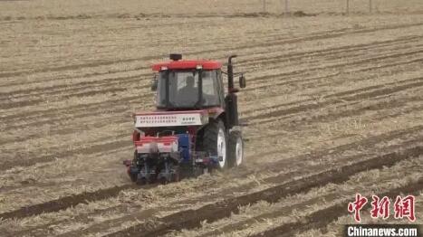 农民正在操作新一代多功能免耕播种机开展春耕工作。 来源:中国新闻网