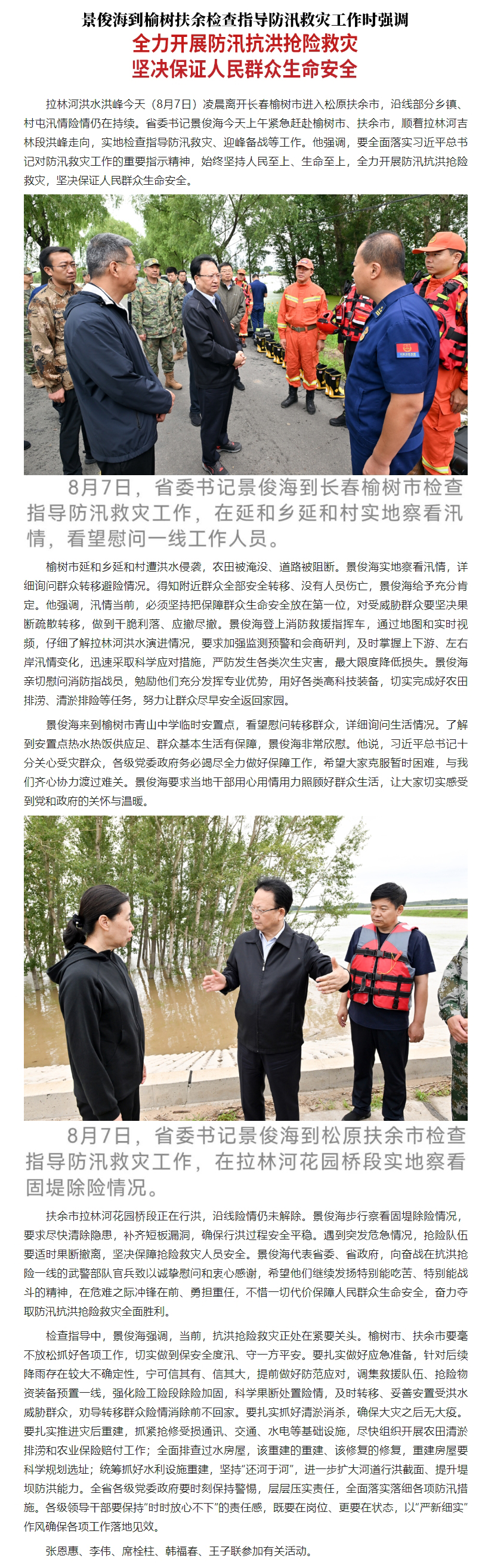 原标题: 景俊海:全力开展防汛抗洪抢险救灾 坚决保证人民群众生命安全