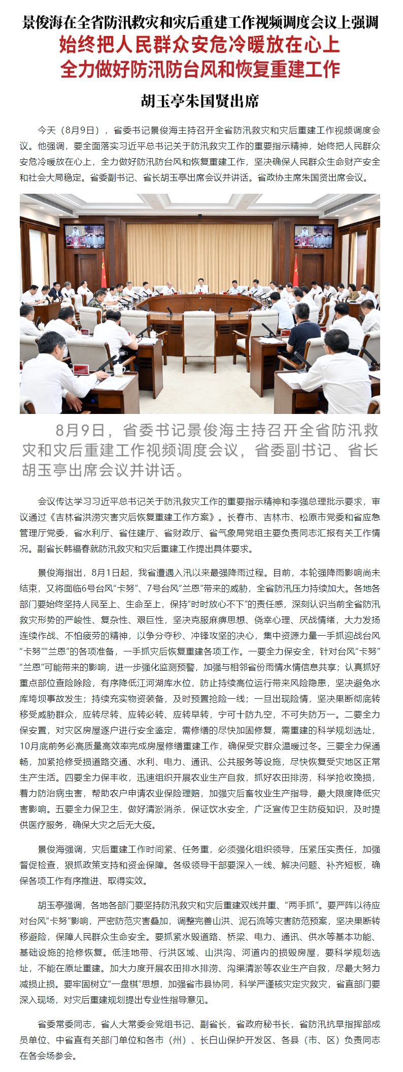 原标题: 景俊海:始终把人民群众安危冷暖放在心上 全力做好防汛防台风和恢复重建工作