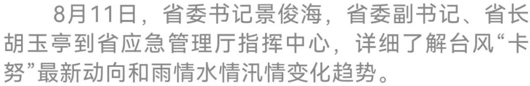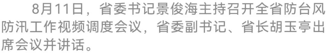 今天(8月11日),省委书记景俊海主持召开全省防台风防汛工作视频调度会议。他强调,要深入贯彻习近平总书记关于防汛救灾工作的重要指示精神,认真落实李强总理要求,始终坚持人民至上、生命至上,紧盯风险点位、薄弱环节,积极备战应战,筑牢坚固防线,全力打好防台风防汛主动仗。省委副书记、省长胡玉亭出席会议并讲话。