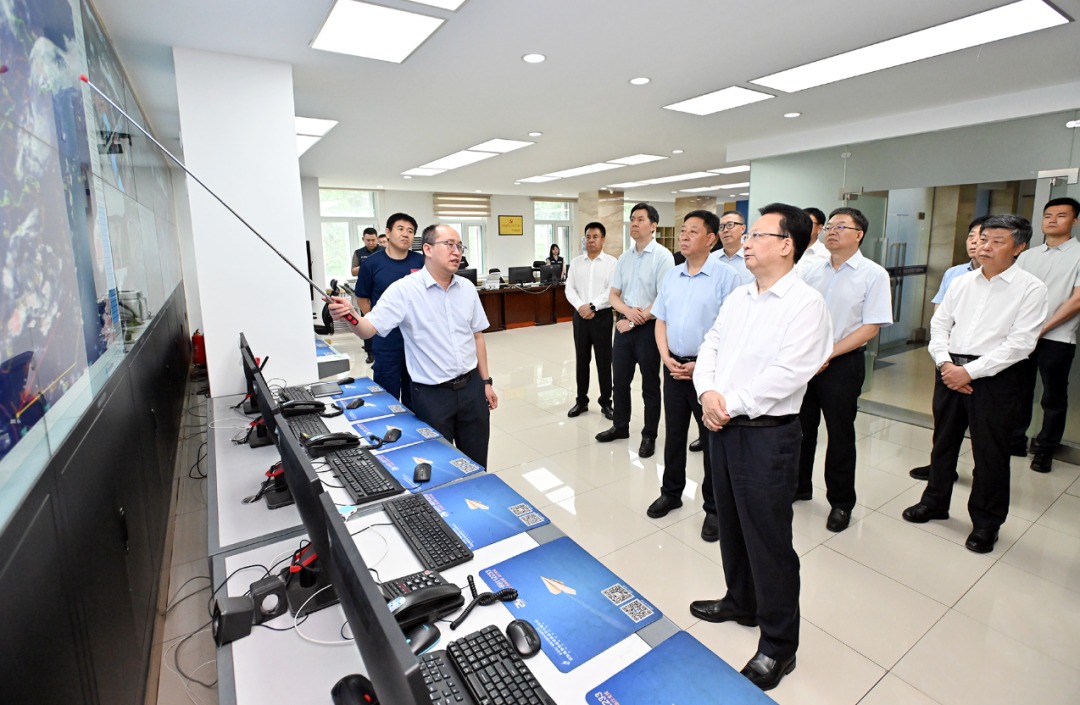 会前,景俊海、胡玉亭到省应急管理厅指挥中心,通过气象卫星云图和省防汛抗旱应急监测决策支持系统,详细了解台风“卡努”最新动向和雨情水情汛情变化趋势,要求毫不放松抓好精准监测,及时发布预警信息,科学有效做好防范应对工作。景俊海、胡玉亭通过实时视频察看水利设施抢险施工进展,强调要加快建设堤防加固工程,保障好抢险救灾人员安全。