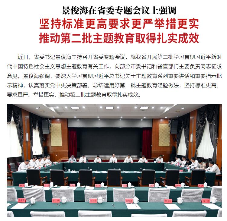 原标题: 景俊海:坚持标准更高要求更严举措更实 推动第二批主题教育取得扎实成效
