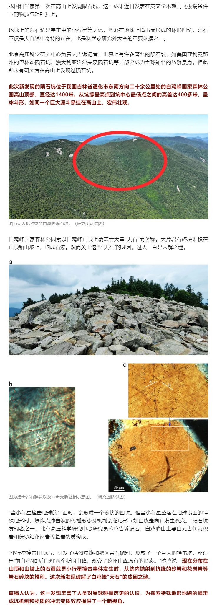 原标题: 我国科学家第一次在高山上发现陨石坑