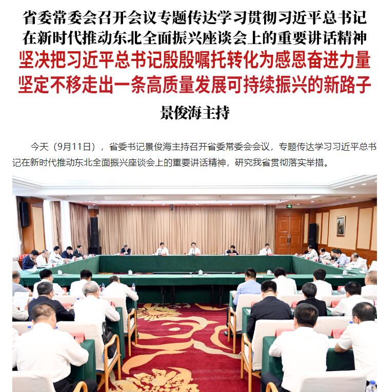省委常委会召开会议专题传达学习贯彻习近平总书记在新时代推动东北全面振兴座谈会上的重要讲话精神