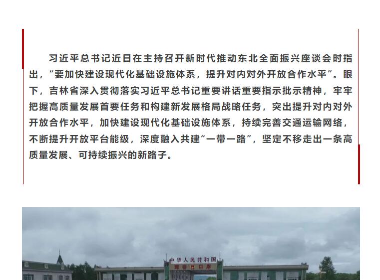原标题: (牢记嘱托谋振兴 感恩奋进谱新篇)吉林:加快建设现代化基础设施体系 提升对内对外开放合作水平