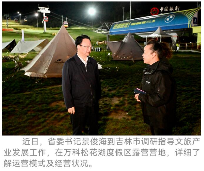 景俊海走进度假区露营营地,详细了解运营模式,希望企业深入研究需求,主动引领需求,不断推出“旅游+”新业态新模式,持续激发消费增长新动力新活力。景俊海实地了解度假区西扩项目推进情况,勉励企业加快项目建设,丰富配套设施,进一步优化全季节全链条旅游服务。在吉林化纤集团碳纤维冰雪装备展示区,景俊海强调,体育装备制造是碳纤维复合材料的重要应用场景,行业发展前景广阔。吉林化纤集团要充分发挥技术优势,持续深耕拓展市场,不断提升品牌价值,推动产业链从原材料生产向终端产品制造延伸。