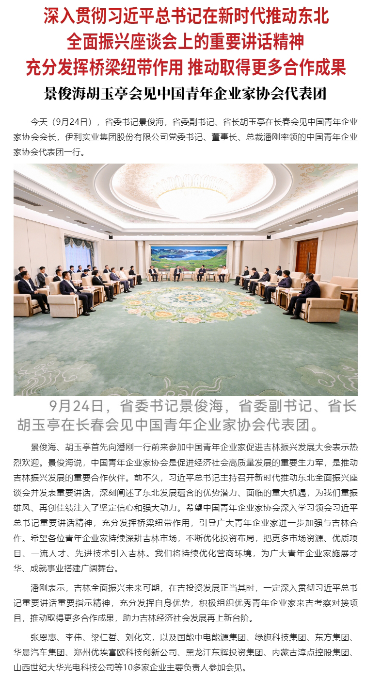 原标题: 景俊海胡玉亭会见中国青年企业家协会代表团