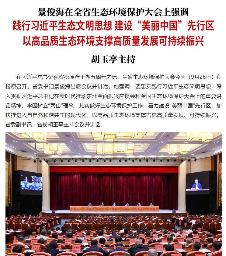 原标题: 景俊海:践行习近平生态文明思想 建设“美丽中国”先行区 以高品质生态环境支撑高质量发展可持续振兴