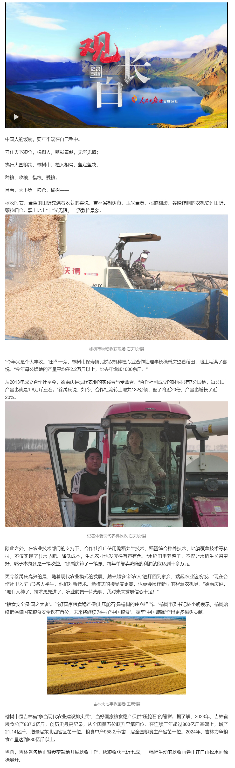 原标题: 观长白丨天下第一粮仓,“丰”光无限,榆树每年为每个中国人产5斤粮